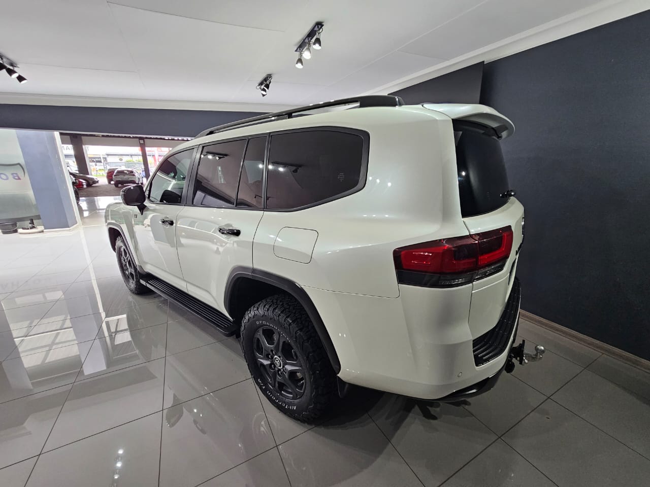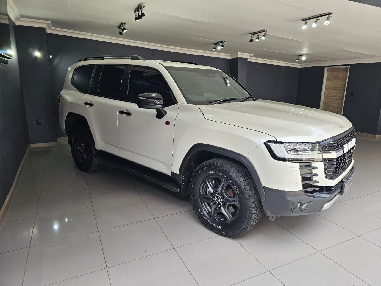 Introducing the 2022 Toyota Land Cruiser 300 3.3D GR Sport, a remarkable blend of rugged capability and luxurious comfort. This pristine white SUV is in outstanding condition, backed by a full franchise service history that assures you of its reliability and meticulous upkeep. Designed for those who demand the best, it features a powerful 3.3-liter V6 turbo diesel engine, delivering an impressive 225 kW and 700 Nm of torque, ensuring robust performance whether you're navigating city streets or off-road terrain. With an average fuel consumption of 8.9 l/100km and a range of up to 1,236 km, this vehicle is as efficient as it is powerful.